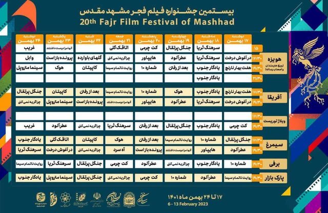 >>> جدول اکران تهیه شده توسط ایسنا...